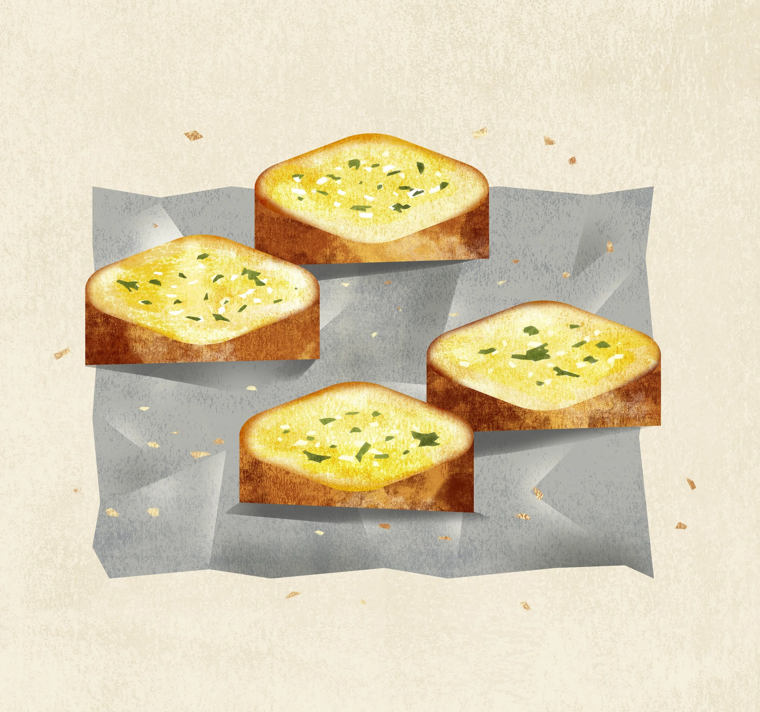 Toasted garlic bread. Yes it’s toasted (imagine we’re all watching Mad Men).