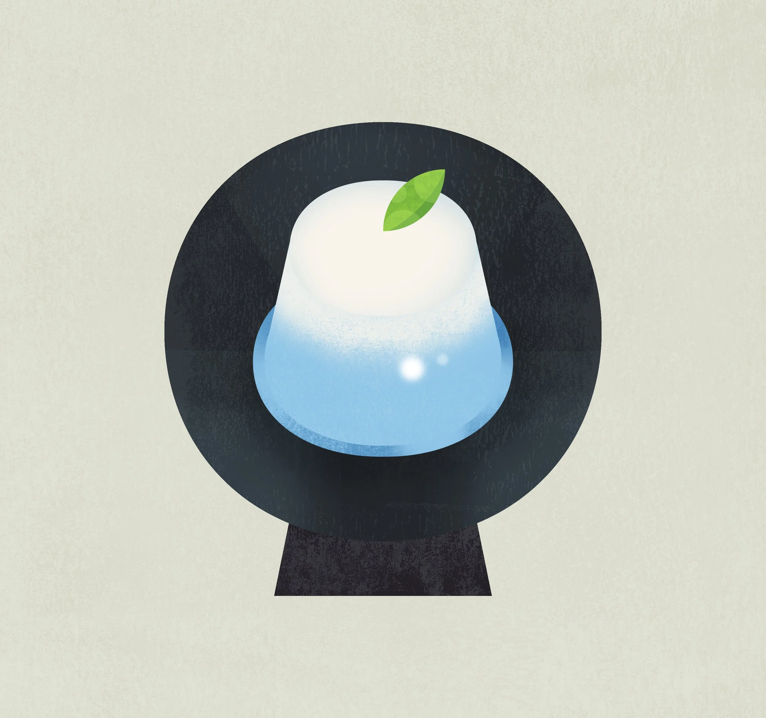 Mount Fuji milk pudding, a popular signature milk pudding dyed with nature colouring of Butterfly Pea sold in my good friend's Café “Nggy &” in Sai Ying Pun, HK.