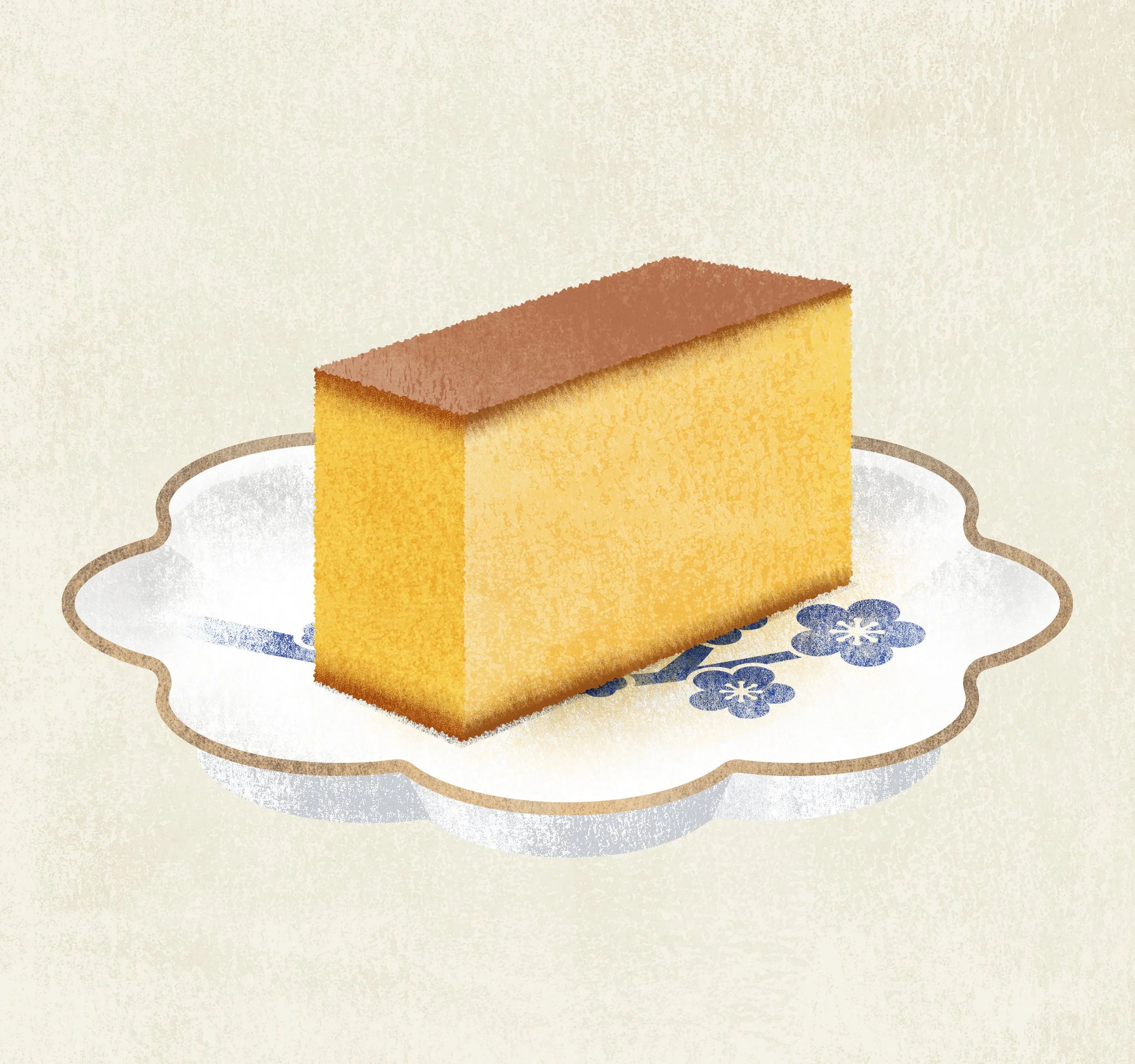 Castella, as known as Cake of Nagasaki, is a popular Japanese honey sponge cake that was originally introduced by the Portuguese merchants to the Nagasaki area in the 16th century. The name is derived from Portuguese Pão de Castela, meaning “bread from Castile”.